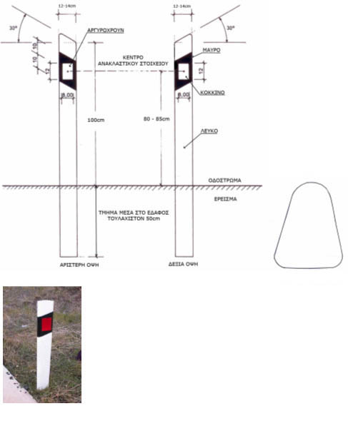 The posts up part it is covered with black band width 25cm, on that are stuck on reflective elements from membrane type ΙΙ dimansion HxW = 120mm x 80mm
