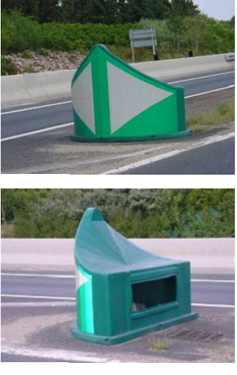 Φέρουν επικολλημένα ανακλαστικά βέλη λευκού χρώματος από ανακλαστική μεμβράνη τύπου ΙΙ παρέχοντας υψηλή νυχτερινή και ημερήσια ορατότητα. Τοποθετούνται εύκολα στη θέση λειτουργίας με βύσματα αγκύρωσης και περιλαμβάνουν αποθηκευτικό χώρο.