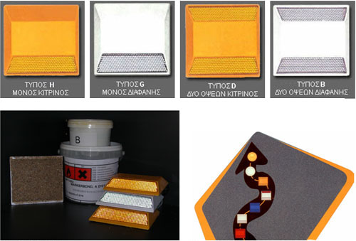 Οι πλαστικοί ανακλαστήρες αποτελούνται από πλαστικό (ABS) κέλυφος γεμισμένο με συνθετικό ισχυρά συγκολλητικό υλικό.