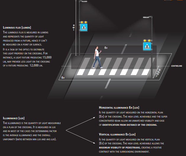 - Ειδικότερα, ο οριζόντιος φωτισμός επιτρέπει στους διερχόμενους οδηγούς να αντιλαμβάνονται τη διάβαση από μεγάλη απόσταση.